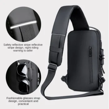 Elevate your daily carry with the Multifunction Anti-Theft USB Charging Crossbody Bag in sleek black, designed for security, comfort, and modern convenience. Crafted from high-density, waterproof Oxford fabric, this lightweight (400g, 32x20x10cm) bag features a breathable, decompression design with padded shoulder straps and a cushioned back for heat dissipation and shock absorption. With an anti-theft lockable zipper, hidden pocket, and reflective strips, it ensures your valuables stay safe day or night. The external USB charging port keeps devices powered, while multiple compartments offer ample storage for work, school, travel, or outdoor adventures. Unisex and versatile, it’s the perfect chest bag, messenger bag, or casual backpack for any lifestyle.
