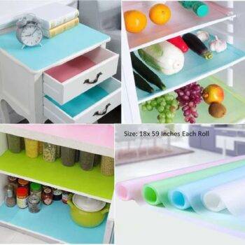 Upgrade your kitchen with the Refrigerator, Table & Drawer Mats, versatile shelf liners for Pakistan 2025. Measuring 45 cm x 150 cm (17.7 x 59 in) per roll and weighing 255g, these EVA mats are antibacterial, waterproof, nonslip, and easy to cut for custom fits. Designed for refrigerators, drawers, cabinets, and tables, they prevent bacterial growth, absorb odors, and resist oil stains. With a textured nonslip surface, they ensure items stay in place while protecting surfaces from spills and scratches.