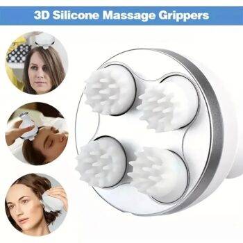Ease stress and promote wellness with the Scalp Massager Electric. Featuring 4 moveable clusters with soft silicone heads, this rechargeable device massages your scalp, neck, and body. For example, use it after a long day to relieve fatigue. Unlike traditional massagers, its portable, washable design ensures convenience.
